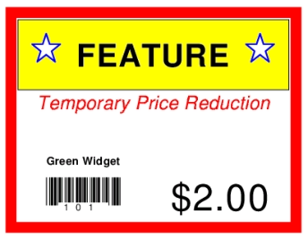 Design your own barcode shelf labels, shelf talkers and signing. Create new shelf labels or barcode labels with the click of a button for: All items included in a mass price change. All items included in a promotion. All items just received.