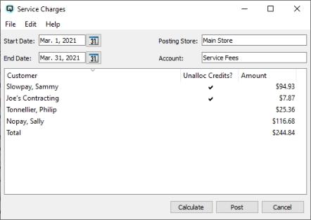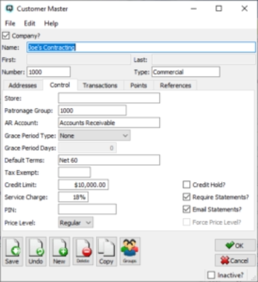 Quasar provides a broad range of accounts receivable support. By customer you can define: If the customer can charge. The credit limit for the customer, if they in fact can charge. The interest rate the customer will be charged on past due accounts. If the customer wants printed statements or elec- tronic(email) statements. The credit terms for the customer.
